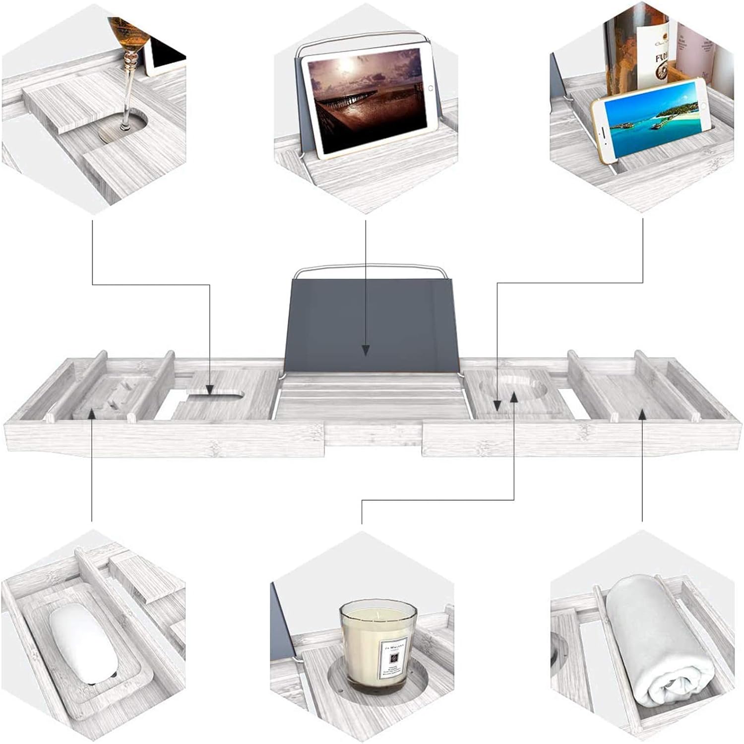 Made by design only at. Gifts for her, self care, valentines day gift, mothers day. It's ready to go out of the box and fits most bathtubs. Simply add your select items onto the bath caddy tray and place it on the edges of the bathtub. (19) £24.90 free uk delivery. Ships free orders over $39. Justwoody 4 out of 5. Artmalle luxury bamboo bathtub caddy tray with book and wine holder,bath accessories & bed tray with extending sides,bathroom organizer for men/women,free soap holder,white. 4.5 out of 5 stars. Patterned bath tray wooden bath rack bath caddy bathtub tray bath board grey white thebathrack. Bath caddy tray for tub: 8% coupon applied at checkout. For those who gravitate towards stylish clear accents, this acrylic bathtub tray feels extra glam, thanks to its thick width and stainless steel handles.